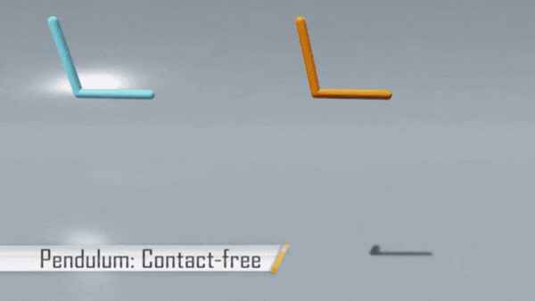 训练后的 NeRD 模型能准确预测混沌系统(如双摆)在数百个时间步内的动力学行为。单个 NeRD 模型还能够对不同的接触配置(如不同高度和方向的地面)进行仿真。图 4 展示了集成 NeRD 的仿真器与采用 Featherstone 求解器的基准解析仿真器的对比。
