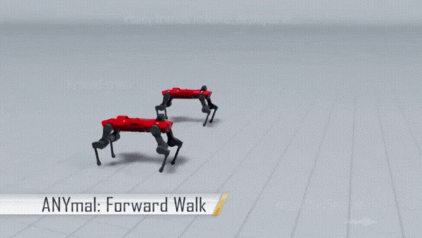 图 5. 解析仿真器与 NeRD 模型在 ANYmal 机器人 1m/s 前向行走 RL 策略中的对比