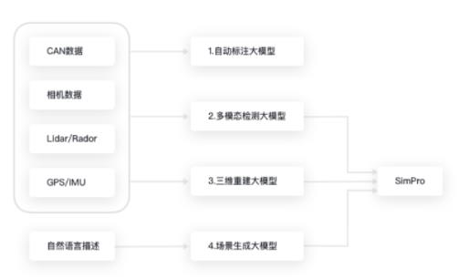 传统的仿真测试验证普遍基于场景,而场景的构建主要由道路和场景编辑器来人工搭建静态场景和动态场景,这种方式费时费力,而且也大大限制了场景要素组合的丰富化。针对此痛点问题,赛目推出了基于大模型的仿真系统,利用机器学习、深度学习等人工智能技术,不仅推出自动标注大模型、多模态检测大模型和场景生成大模型等模块,并且引入三维重建大模型加强渲染画面真实性。