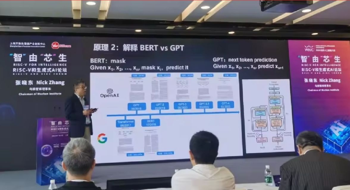 乌镇智库理事长张晓东也受邀在论坛作了“大语言模型的原理与发展应用”的主题演讲。张晓东阐述了大语言模型背后的发展原理,特别是眼下AI在自然语言处理的技术进步的原因。