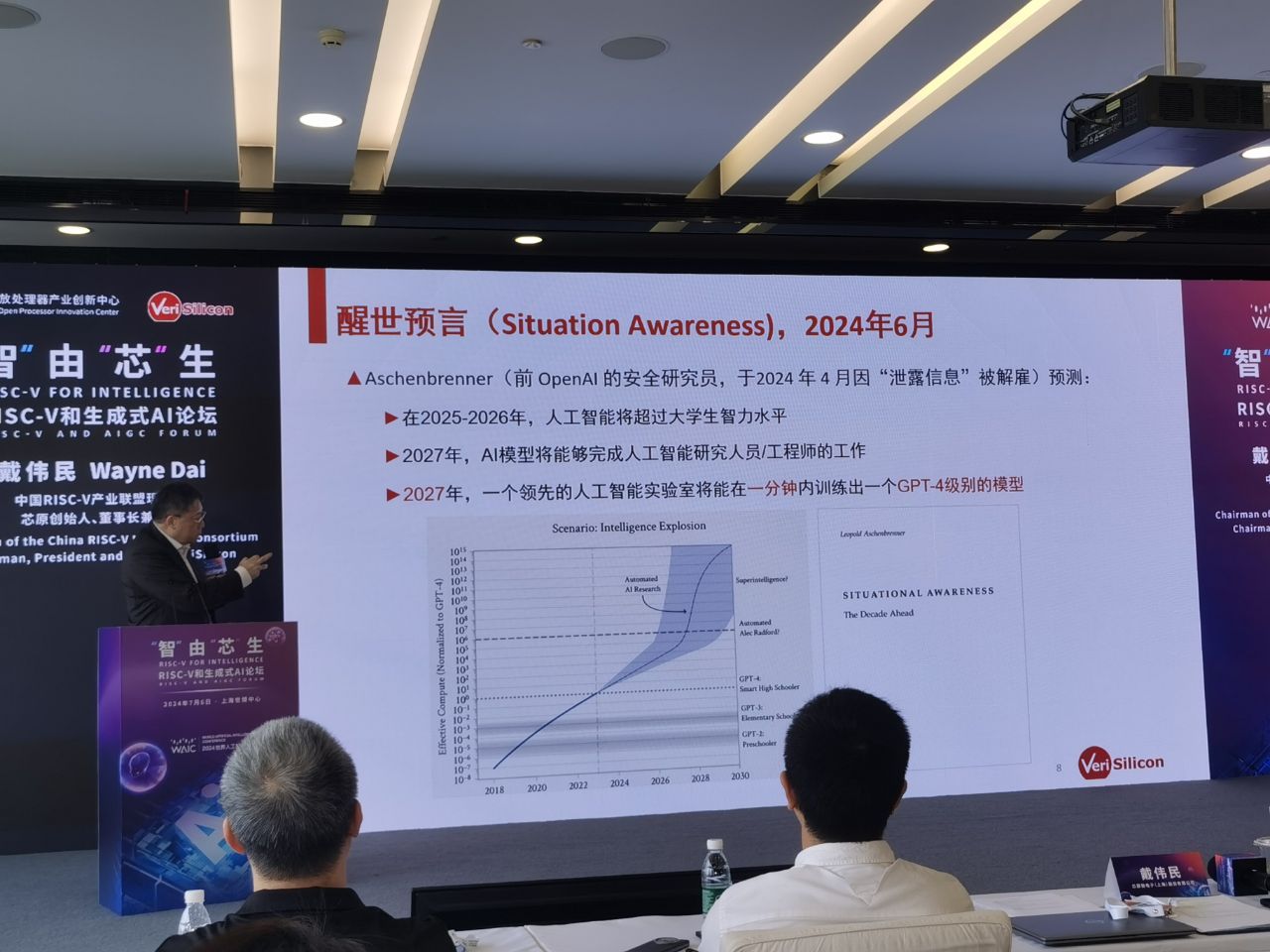 “没有大模型,人工智能都像是弱智,但是有了大模型之后,人工智能就充数成了智能,甚至是超级智能,到2027年,一个领先的人工智能实验室能在一分钟内训练出一个GPT-4级别的模型。” 中国RISC-V产业联盟理事长、芯原创始人、董事长兼总裁 戴伟民在论坛上,特别地提出人工智能的面对的未来风险与挑战。
