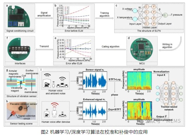 在工作过程中,传感器经常会因电压波动、温度变化或其它环境因素而出现信号漂移,从而导致测量结果失真。为了解决这一问题,机器学习/深度学习算法采用了两种策略:首先,在校准过程中采用极限学习机(ELM)和多层感知机(MLP)等算法来考虑各种环境因素的影响,从而减少重复校准测试的需求,缩短校准时间,并提高精度;其次,在使用过程中引入多层感知机和卷积神经网络等算法,自动补偿环境中遇到的各种干扰。