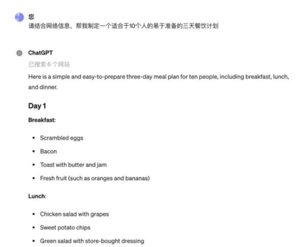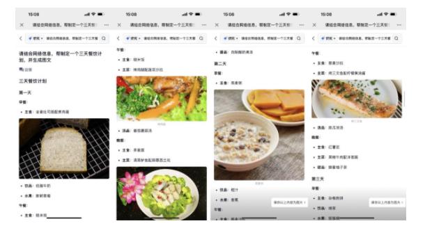 比如,当用户要求大模型提供一个三天的膳食计划: