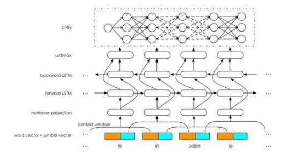 在中间的隐藏层,采用 Bi-LSTM 进行特征学习,既能捕捉上文特征,也能捕捉下文特征。