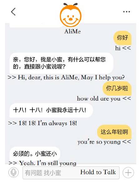 图16 AliMe Chat 在阿里小蜜中上线后的聊天示例