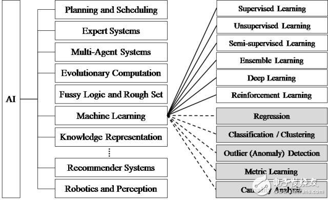 人工智能的研究领域也在不断扩大,图一展示了人工智能研究的各个分支,包括专家系统、机器学习、进化计算、模糊逻辑、计算机视觉、自然语言处理、推荐系统等。