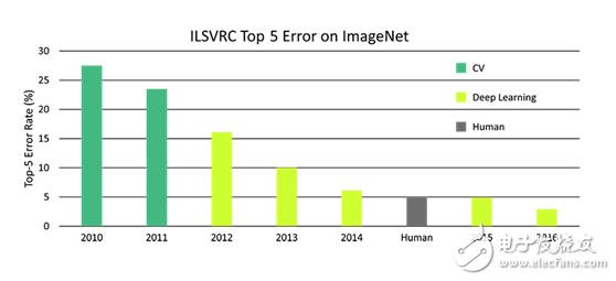 8年的时间里,在ImageNet挑战赛中,计算机对图像分类的错误率降低了10倍。 图片来源:dsiac.org