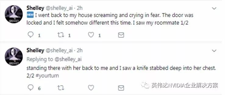 起初,Shelley 每隔一个小时在其推文中编写新故事,当关注者回应新句子时,它就能通过这句话以及此前所有信息来确定符合逻辑的下一个句子,从而不断编写与关注者兴趣点高度一致的故事。它的近期成品如下: