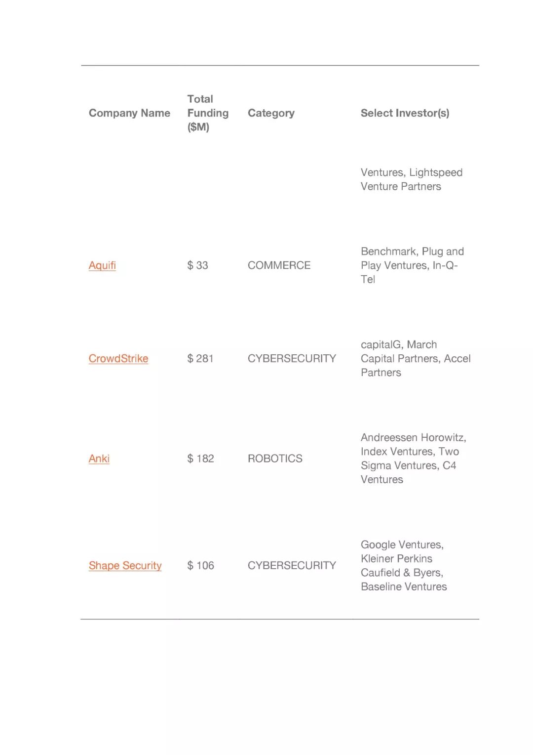 Accel partners支持的CrowdStrike在Q'17中获得了10亿美元的估值。这家初创公司专注于端点检测和响应,自2012年以来已经申请了24项专利