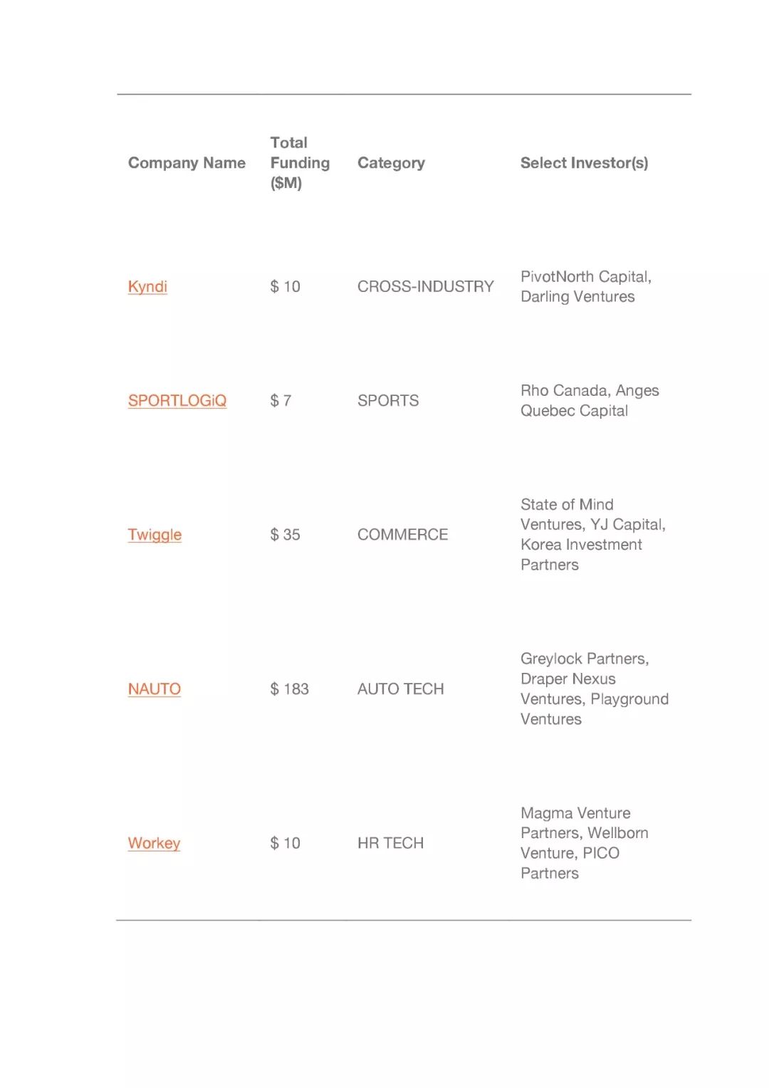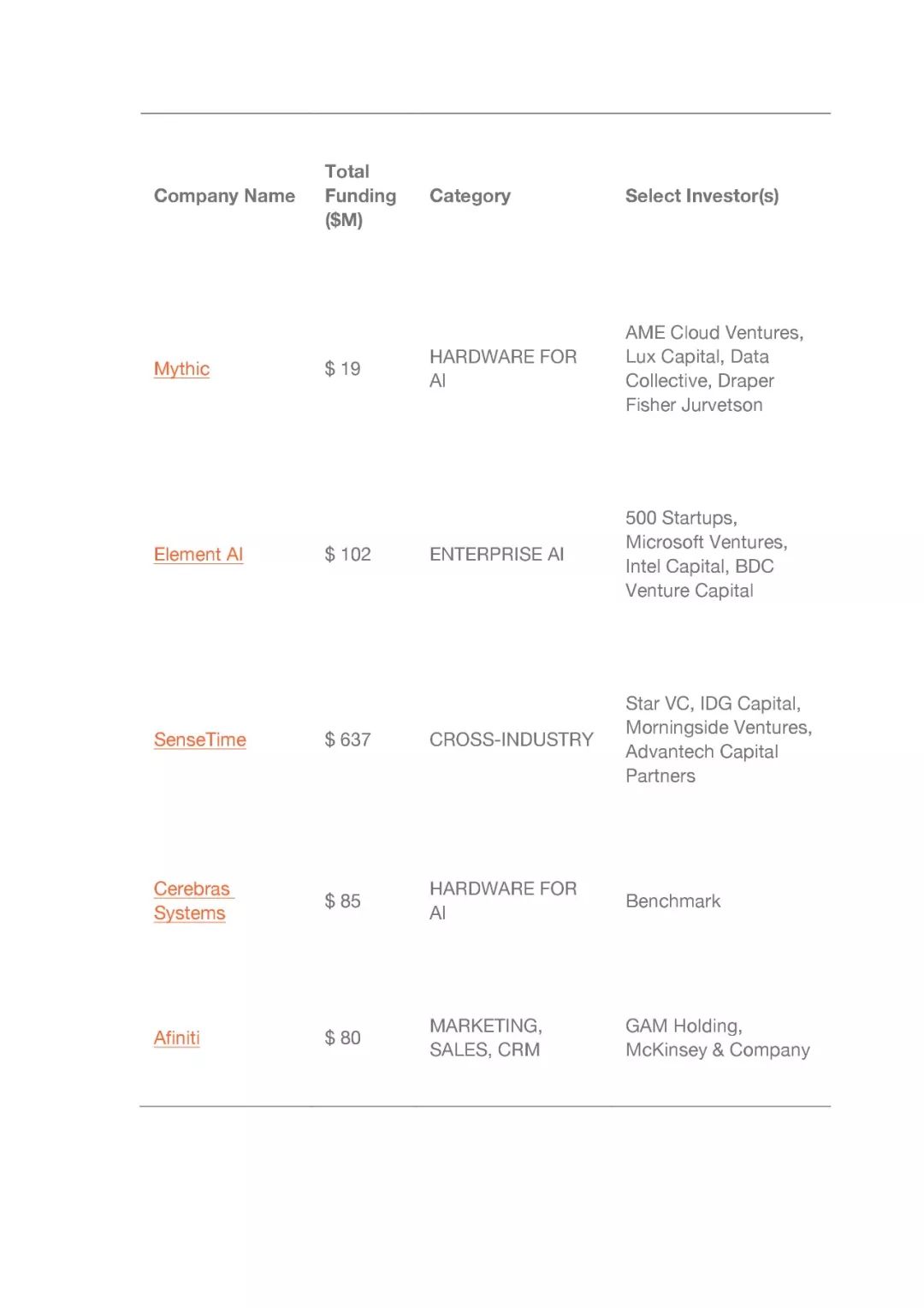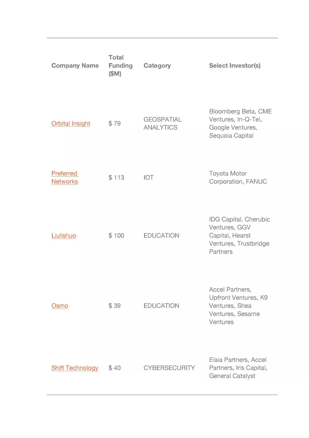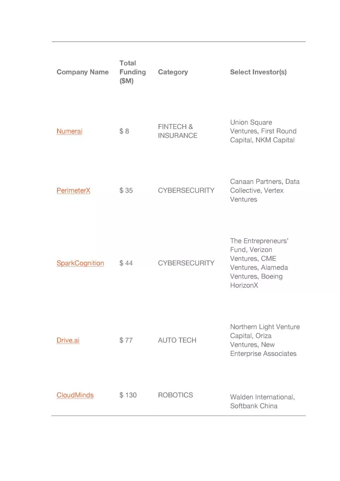 Element AI,Yoshua Bengio创办的,是深度学习领域的先锋企业之一。该公司在Q2'17获得了1亿2百万美元的投资,包括Data Collective、英特尔投资、微软风投、NVIDIA GPUVentures、Real Ventures和腾讯控股。