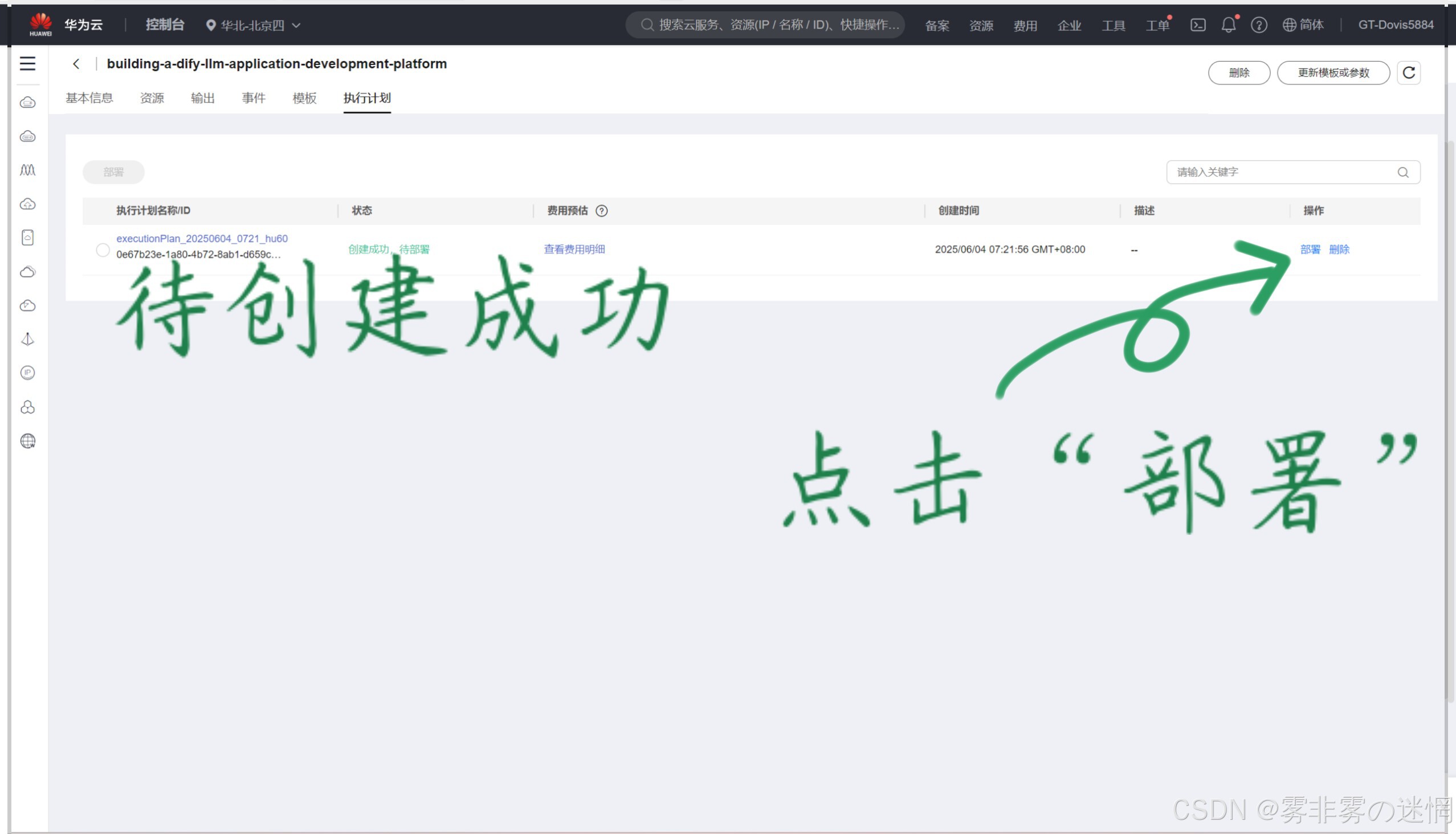 (7)待显示创建成功,点击开始部署,执行部署计划