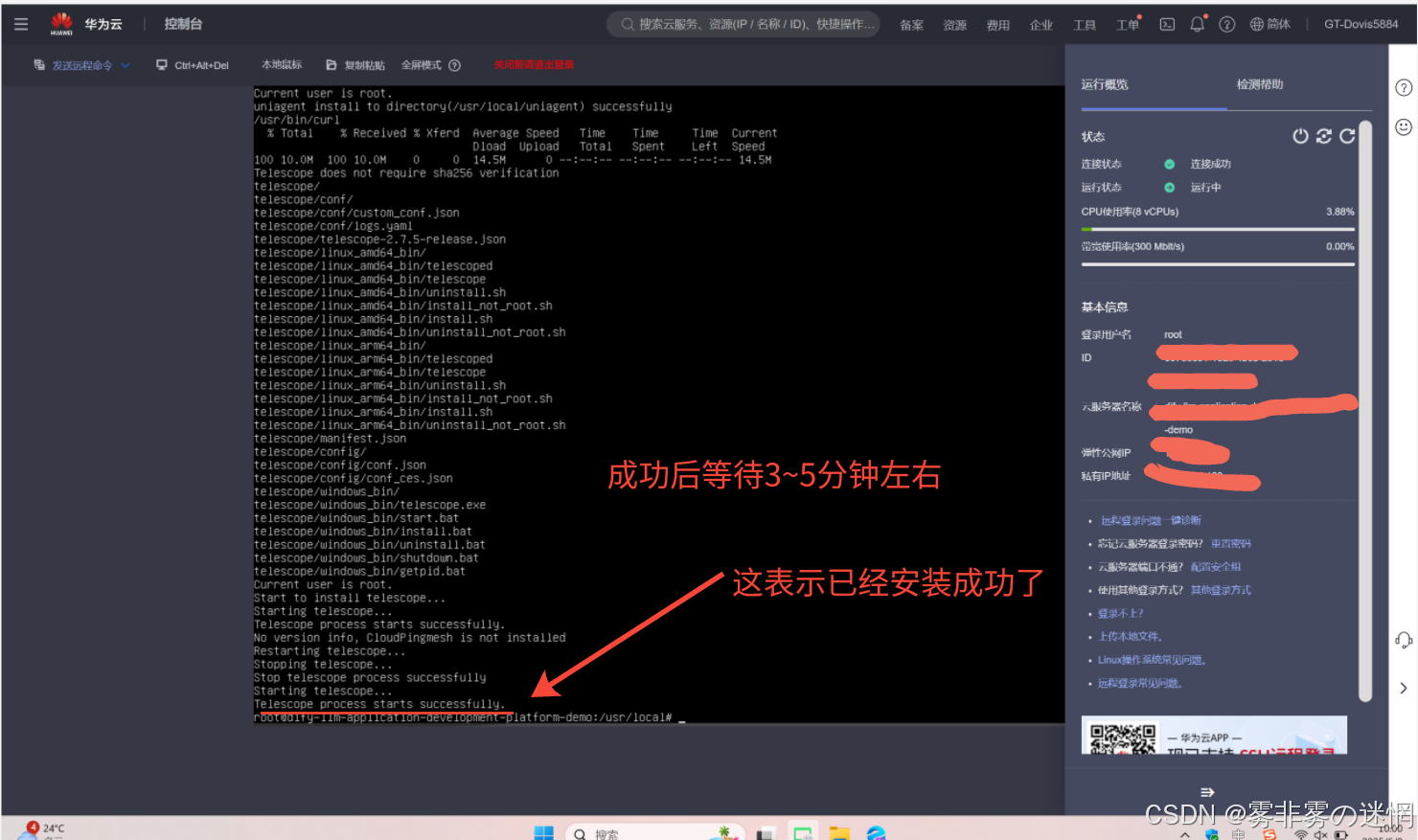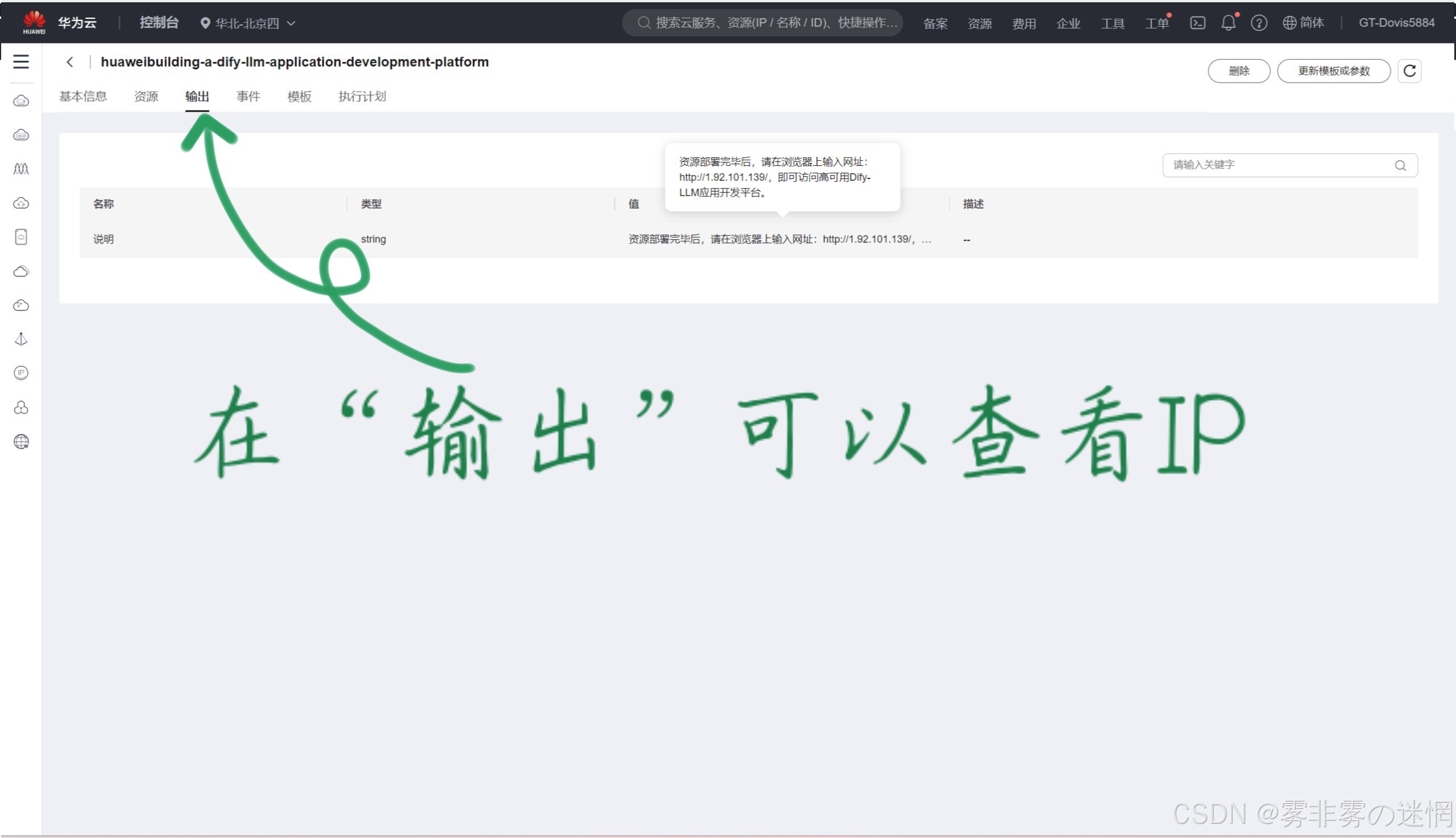 (7)这个过程大概需要20分钟左右,之后点击输出查看公网IP