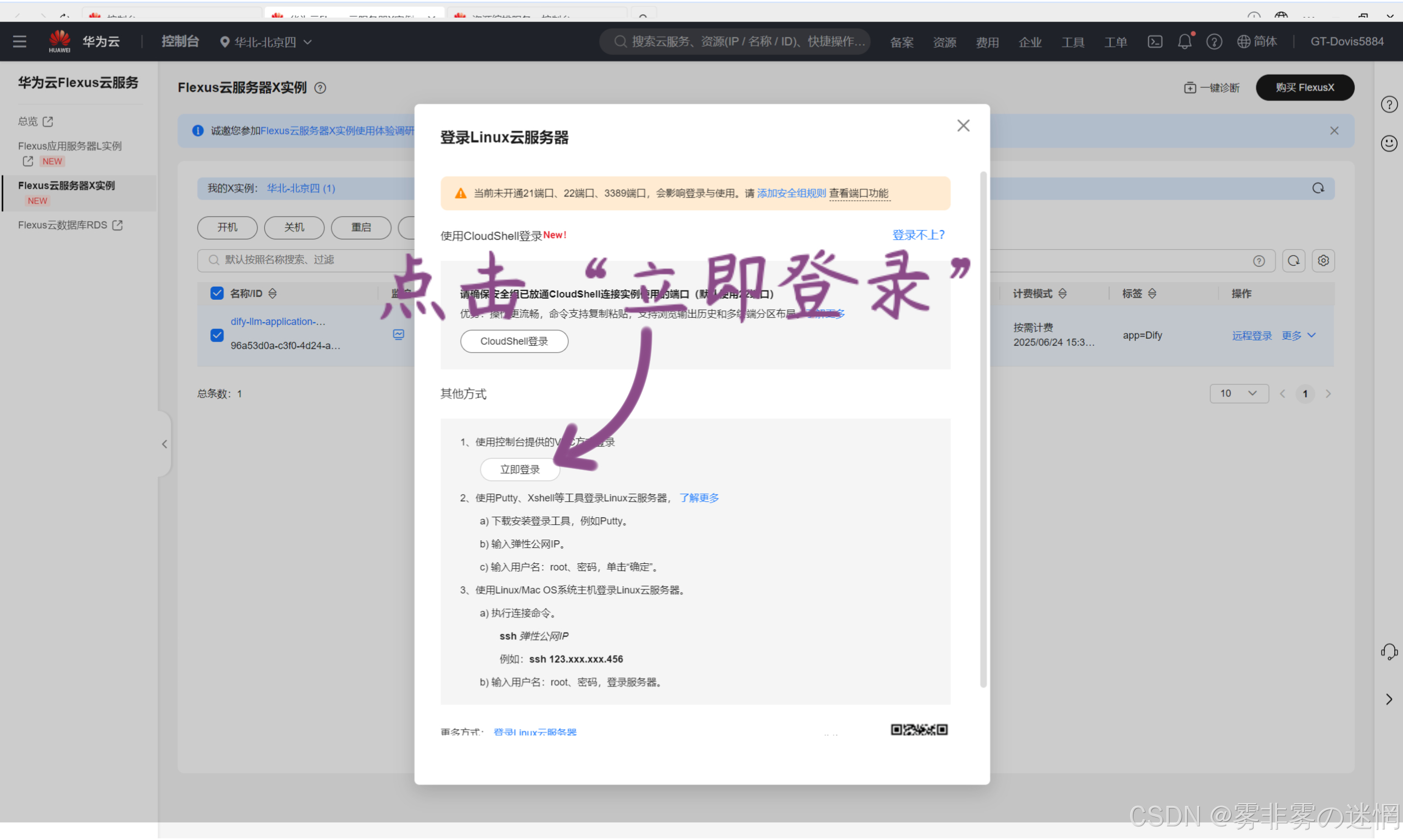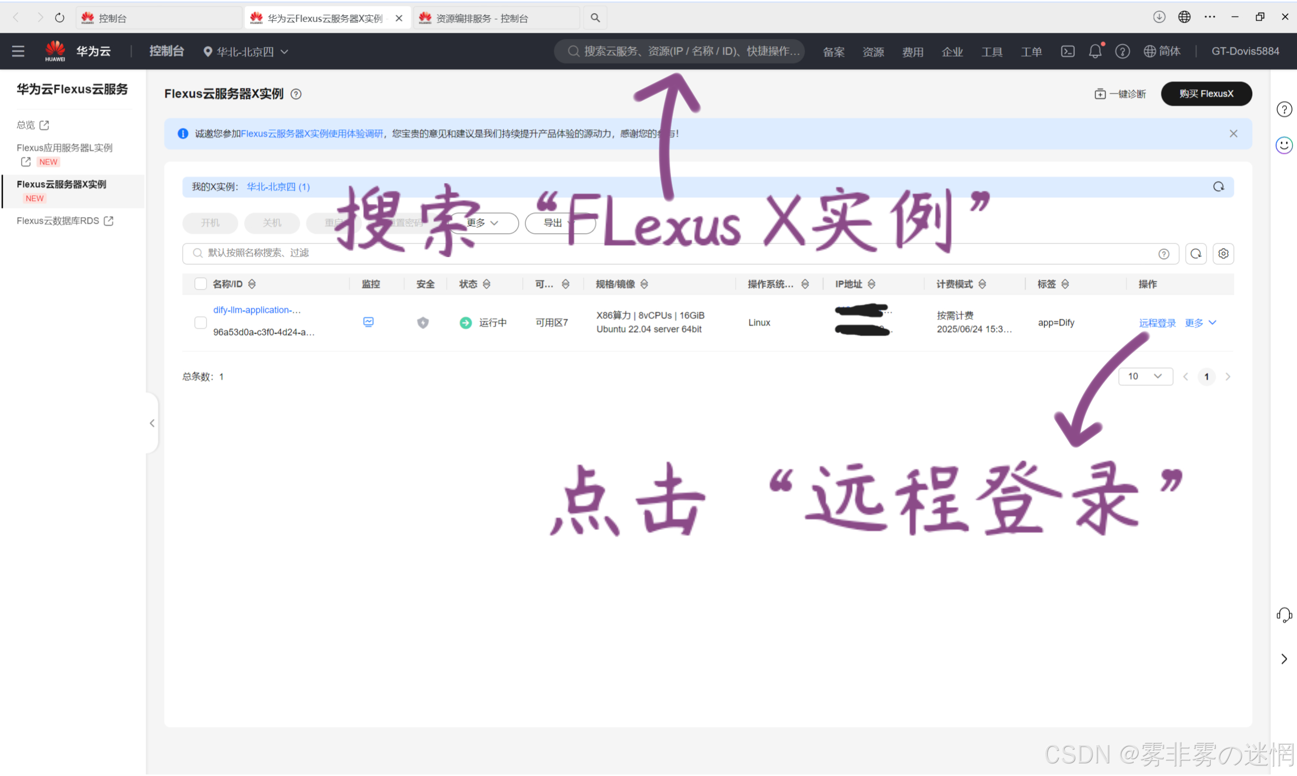 (2)点击Flexus X实例,点击这个已经部署的实例