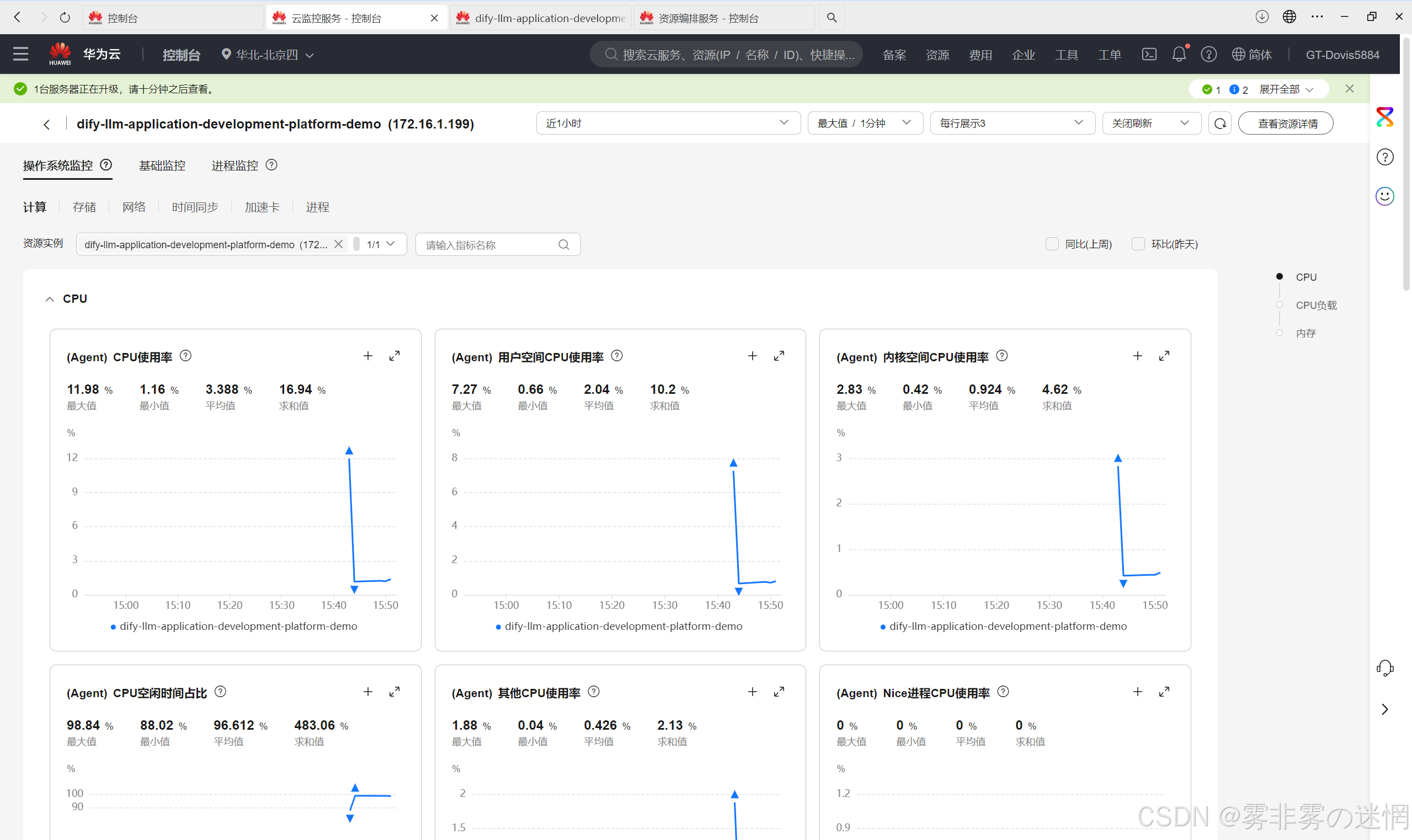 在部署Dify时特选了Flexus X实例。原本预估1小时的配置流程,10分钟就跑到登录界面。操作日志显示资源调度频率比普通实例高出一截,那种按钮按下去立刻有响应的流畅感,算是体会到宣传里 1.6倍算力的分量了!② 高可用部署:压力见真章