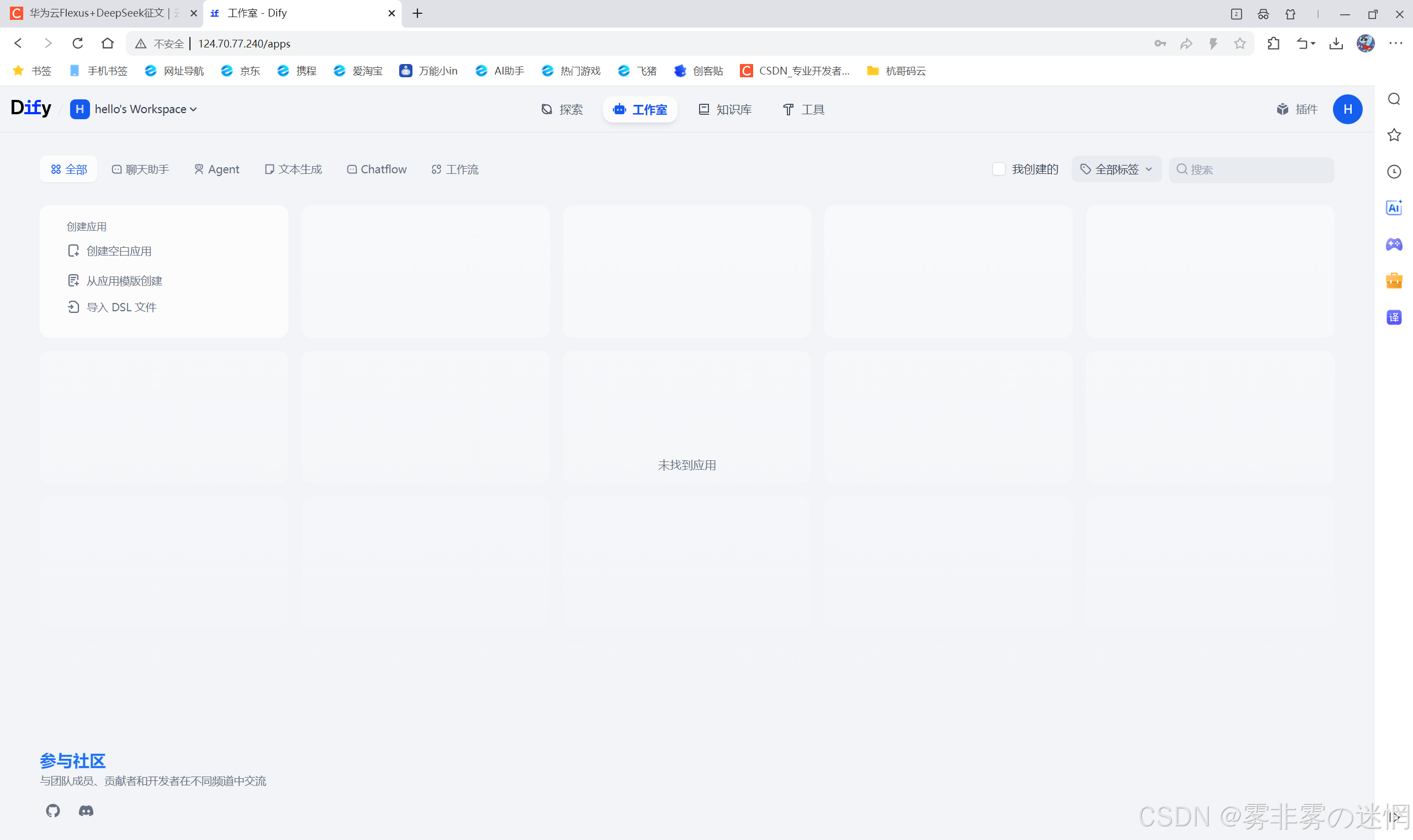 前引:当“AI Agent”从概念走向落地,选择便捷高效的开发平台与强劲可靠的底层算力,关乎着开发效率和成本管控的双重挑战。有幸参与华为云这次有奖征文!亲身体验了其ModelArts Studio上的DeepSeek-V3/R1推理服务,并通过创新性的Flexus X实例(1.6倍算力、6倍业务加速)快速搭建起Dify开发环境。不仅完成了基础应用的构建,更深入实践了CCE容器高可用部署与性能极限测试。本篇分享,正是这段从“一键部署”到“高并发验证”的全流程实践记录与深度思考~本篇文章侧重于如何完成两种不同云服务器的部署!适合新手学习哦!