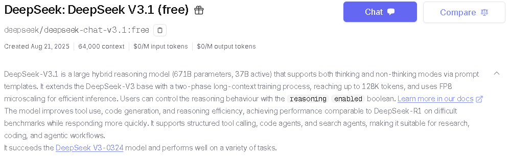 export ANTHROPIC_MODEL="deepseek/deepseek-chat-v3.1:free”