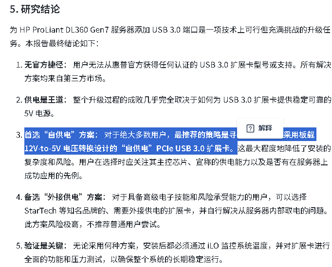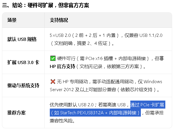 之前我们文章写过惠普HP DL360 GEN7服务器扩展显卡,与解决服务器磁盘阵列问题,今天我们尝试增加一块扩展USB3.0的扩展卡。 我们通过AI搜索先调查研究。